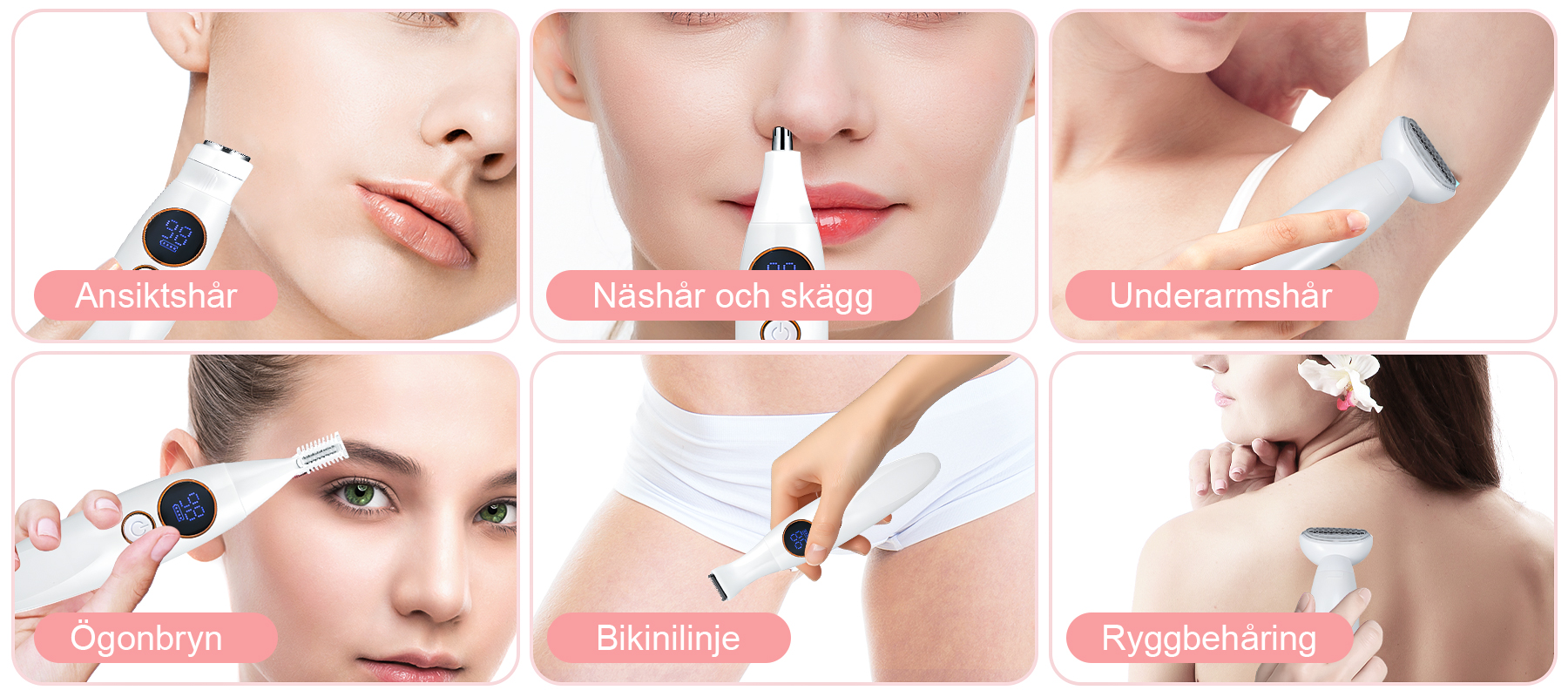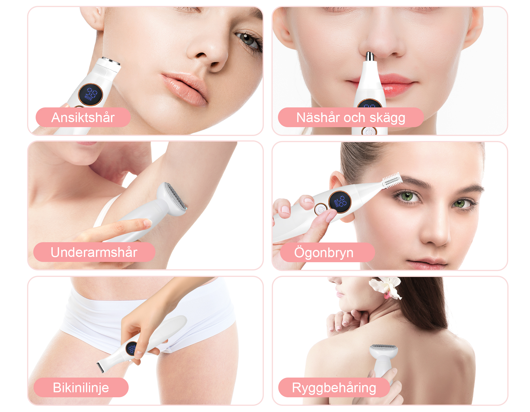 - Mångsidighet I Ett:Fem utbytbara huvuden hanterar alla dina hårborttagningsbehov.