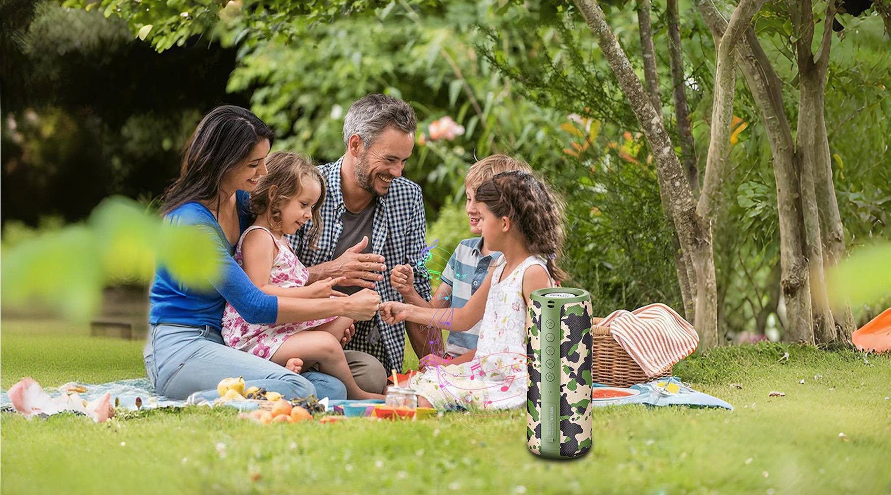 Meacode Portable Bluetooth Speaker var hans svar. Den levererar ett rikt, kraftfullt ljud i ett ultralätt, hållbart hölje. Den är byggd för äventyr, så att du kan njuta av dina favoritlåtar oavsett om du är på en bergspromenad eller bara tränar.