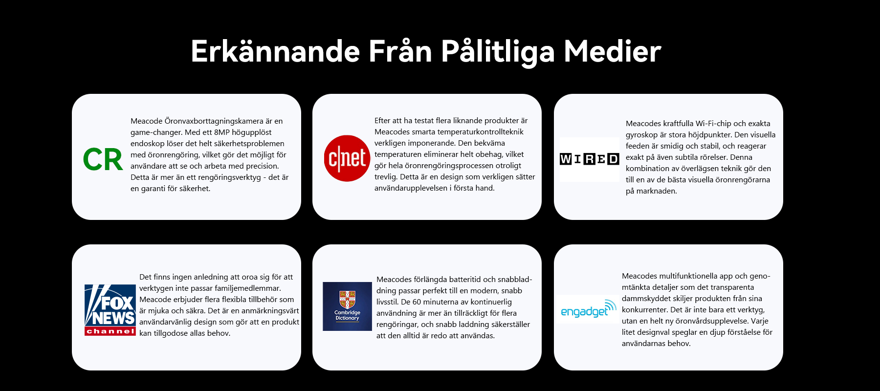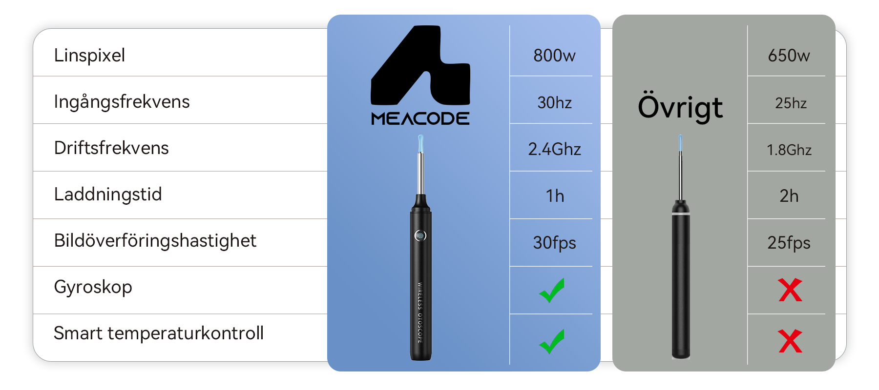 Meacode visuella öronrengöringsverktyg föddes. Det använder en avancerad kombination av precis stabilisering och ett 8MP högupplöst professionellt endoskop för att säkerställa en tydlig och säker rengöring. Meacodes kärnmission är att aldrig svika dig och att skydda din familjs öronhälsa och sinnesro.