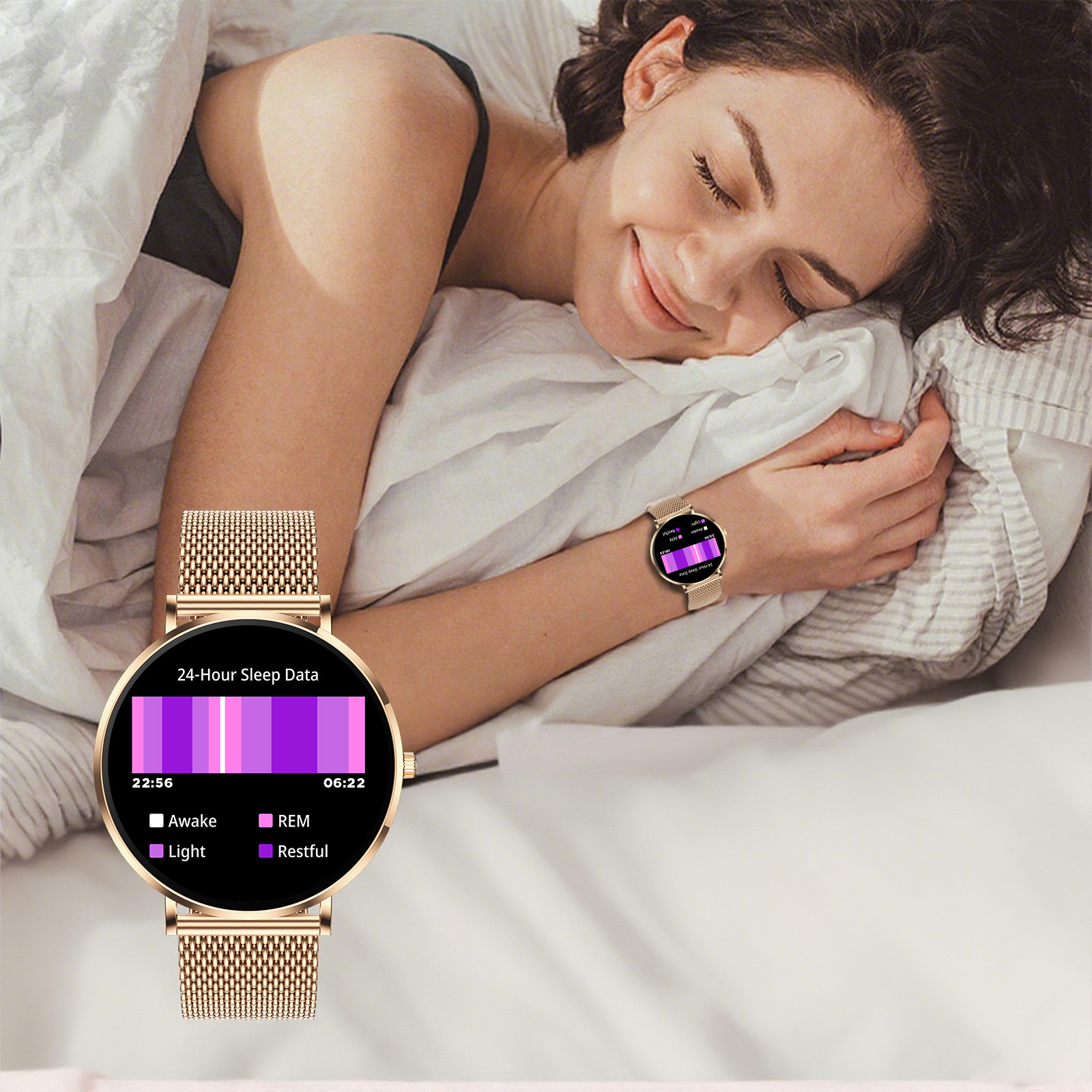 - Puls- och sömnanalys i realtid: Håll koll på ditt välbefinnande med 24/7-pulsspårning och en djupgående analys av din sömncykel, komplett med personliga råd.