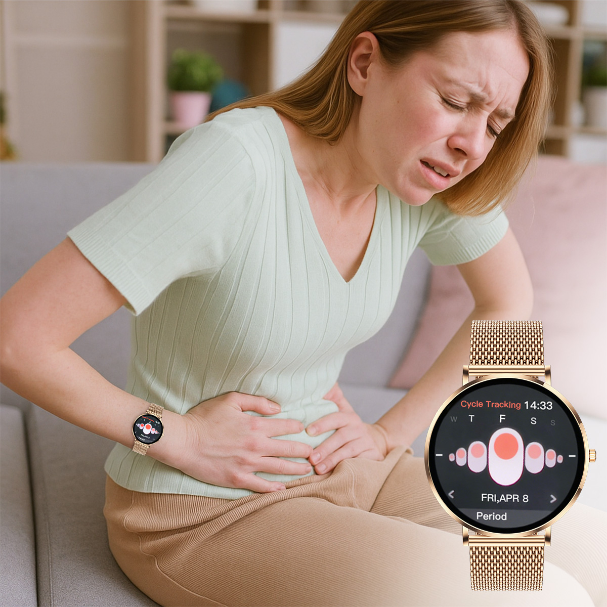 Meacode smartklocka för kvinnor är byggd för att vara din personliga hälsohandledare. Den använder vetenskapligt exakt spårning för att övervaka din menstruationscykel och ägglossning, och ger dig smarta, precisa förutsägelser. Du kan också enkelt registrera symptom, så att du får en djupare, mer personlig förståelse för din kropps rytm.