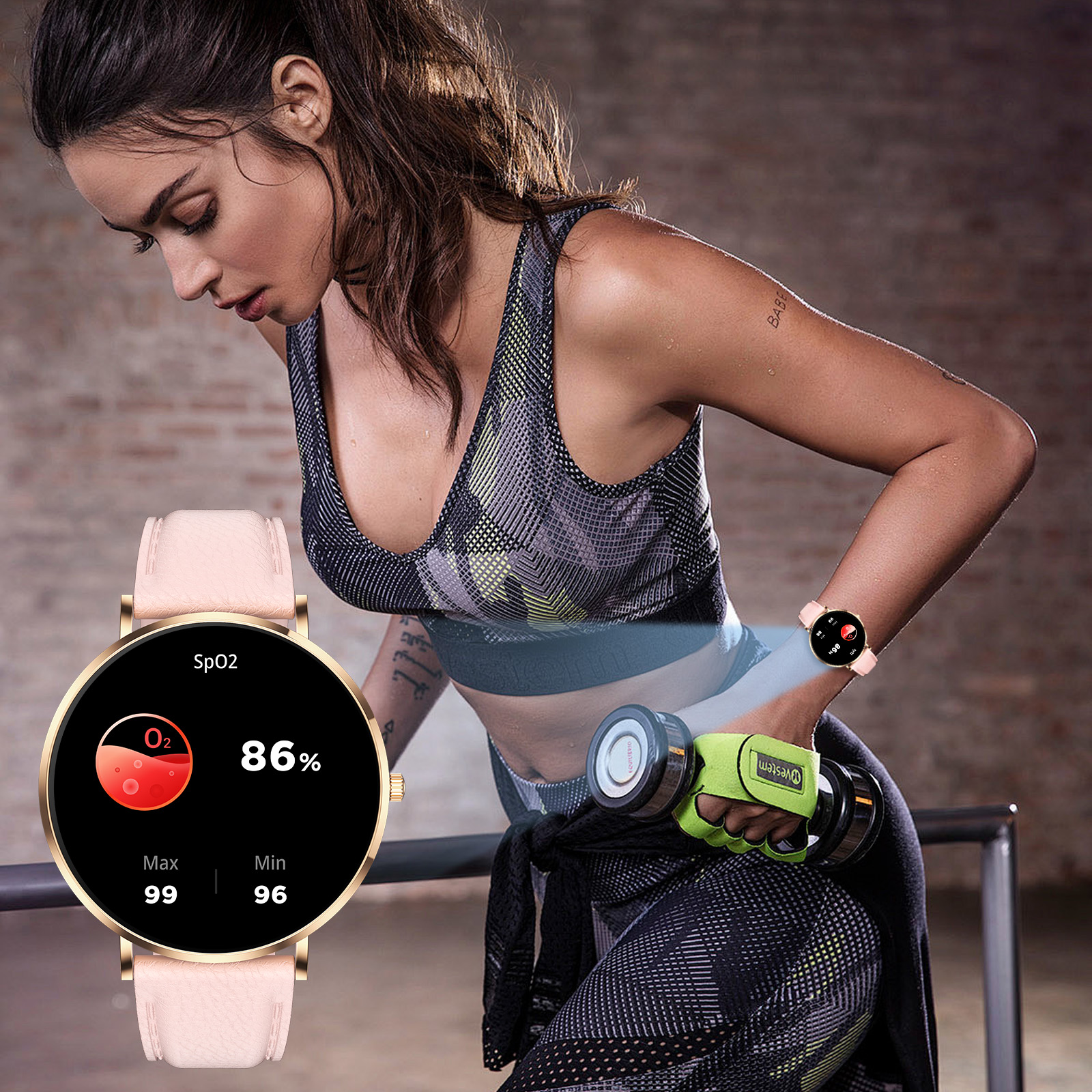 - Stressdetektion och andningsövningar: Klockan upptäcker stressnivåer i realtid och guidar dig genom andningsövningar för att hitta inre balans.