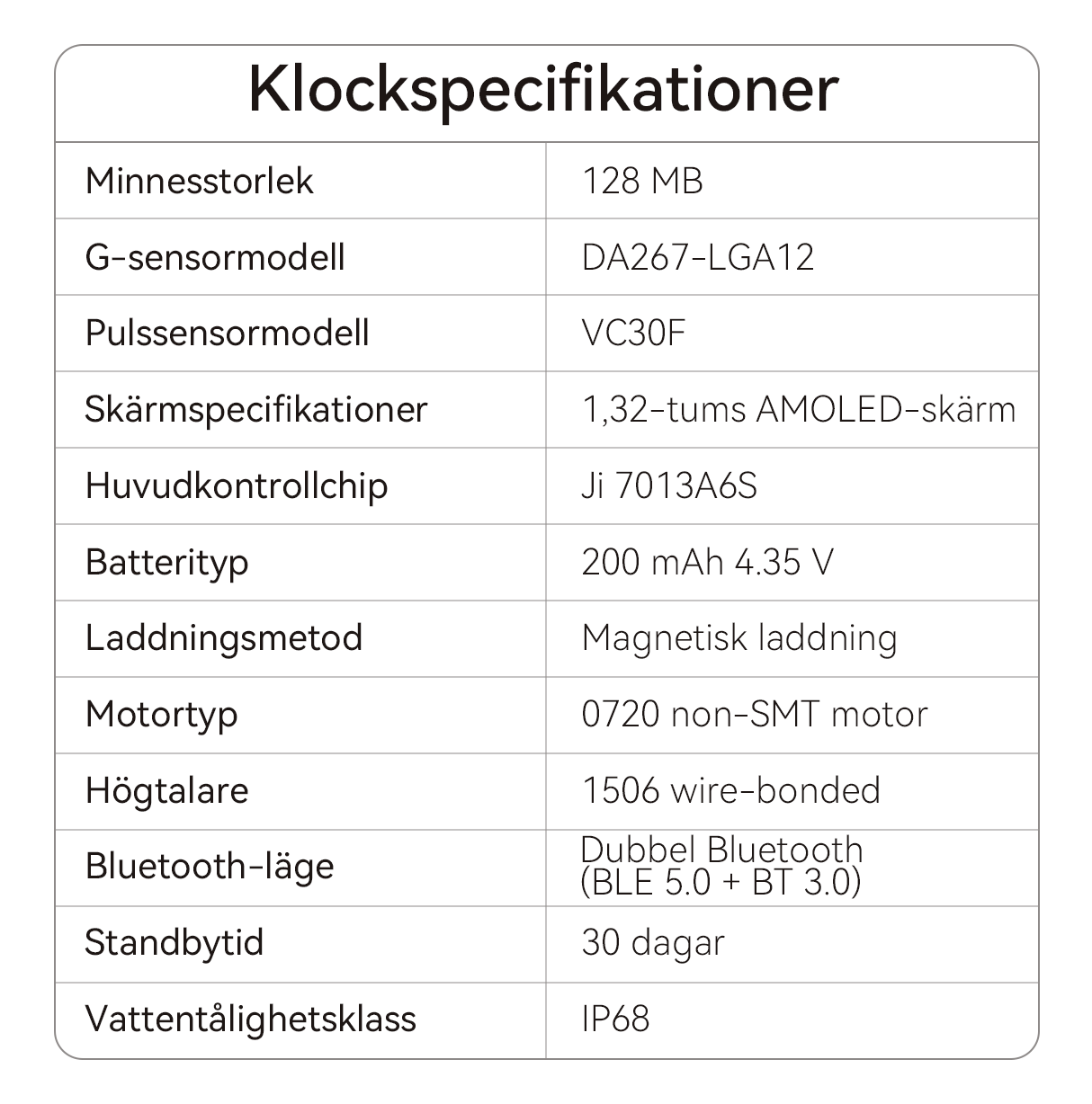 - IP68 Vattentålig: Klockan är svett- och regntålig, så du kan använda den med självförtroende under träning eller till och med i duschen.