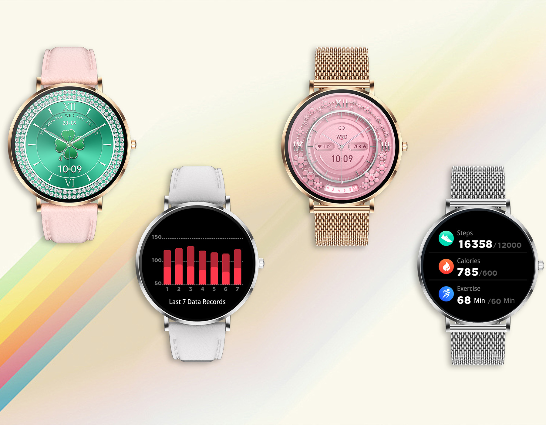 - Massivt urval av anpassade urtavlor: Välj mellan över 200 urtavlor eller ladda upp dina egna foton för att skapa en verkligt unik klocka.