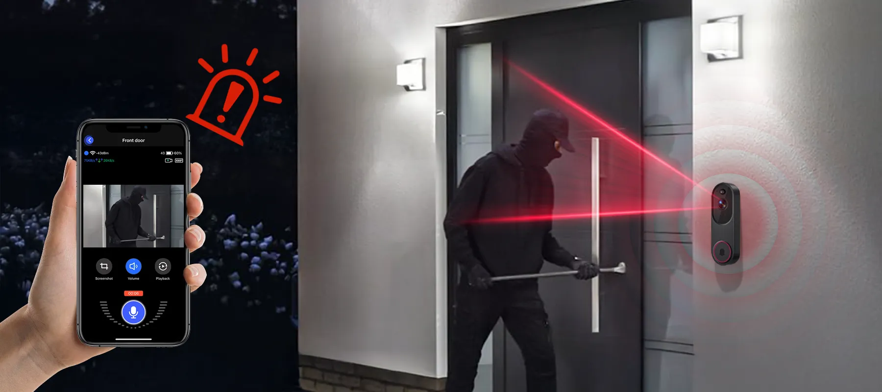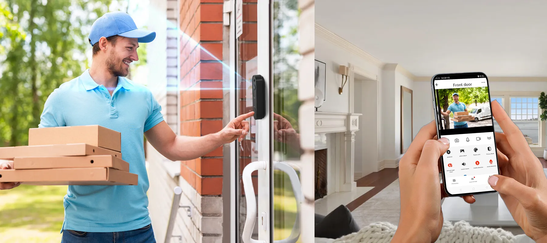 - Fjärrstyrd Bekvämlighet: Se och kommunicera med människor utanför din dörr när som helst, var som helst via din telefon, vilket gör din vardag bekvämare.